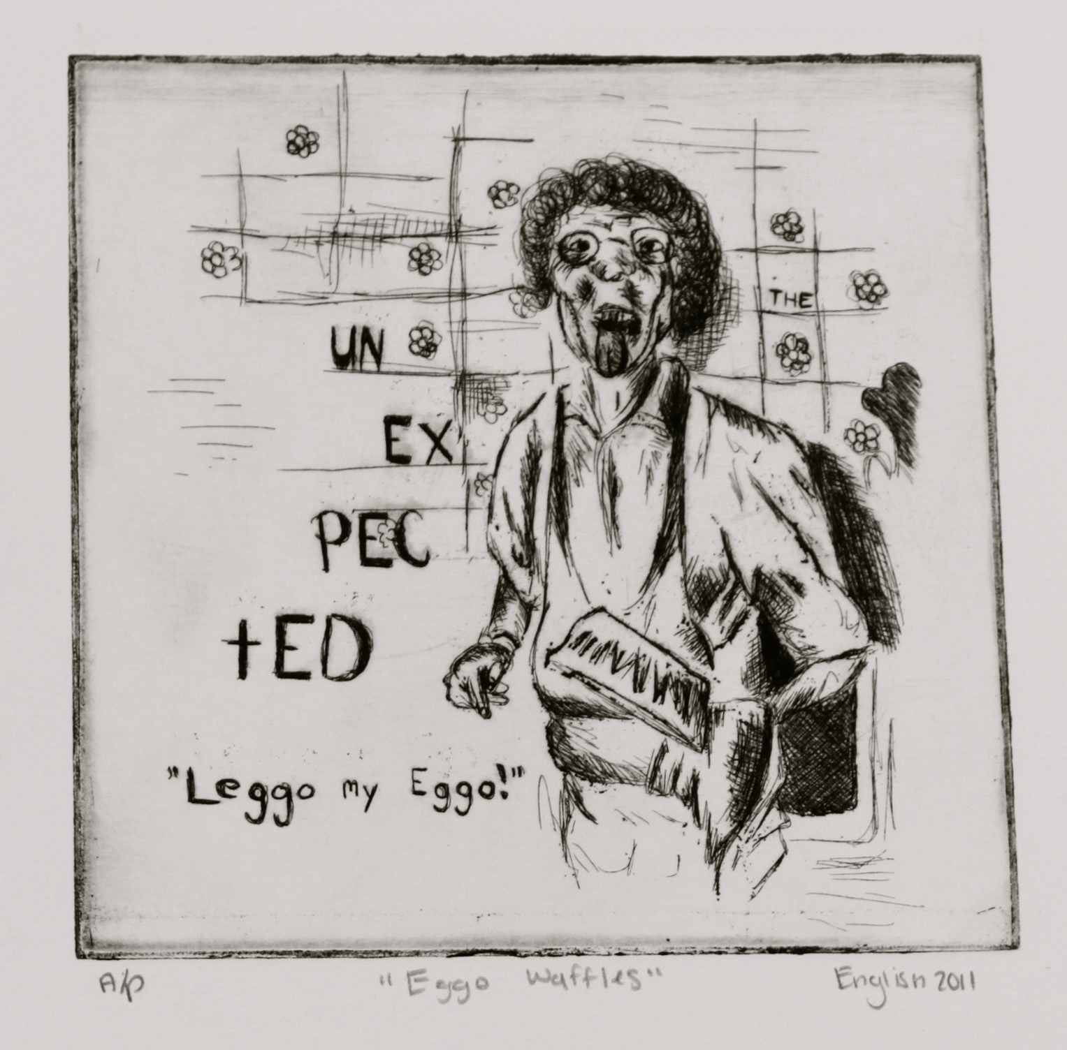 "Eggo Waffles." Etching. 2011.