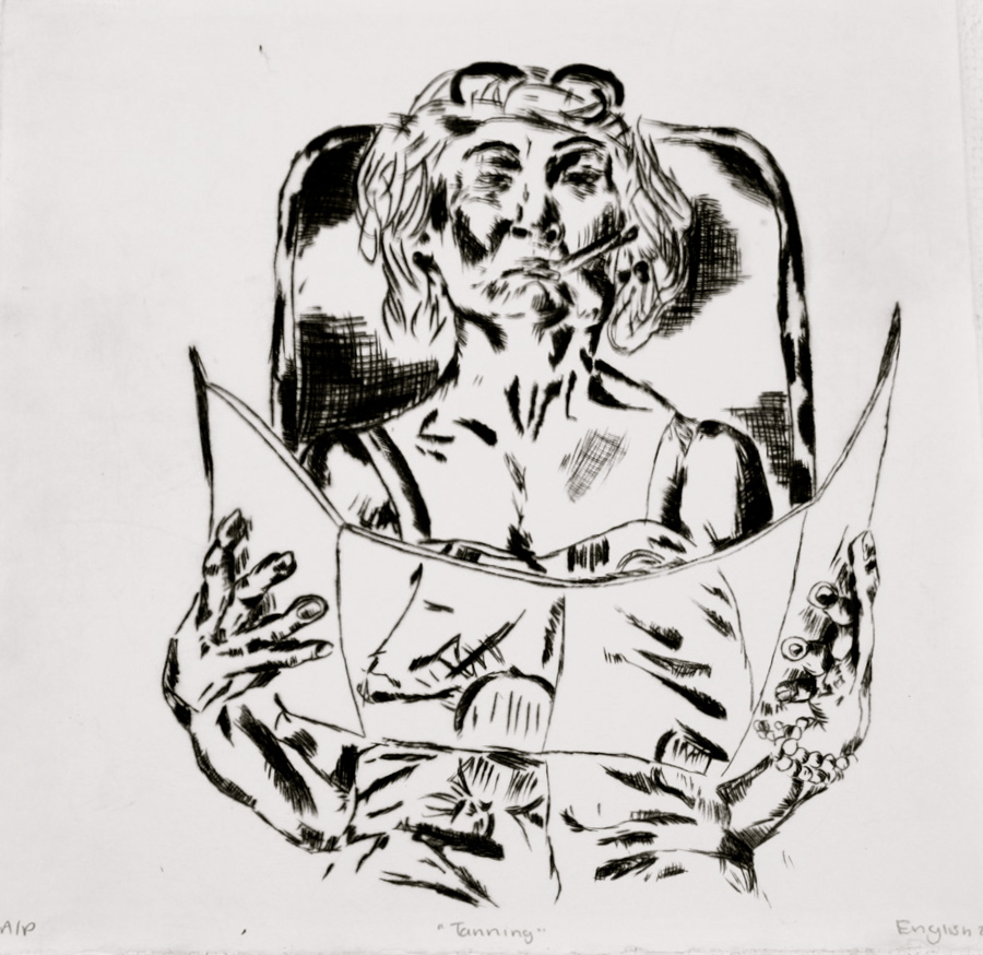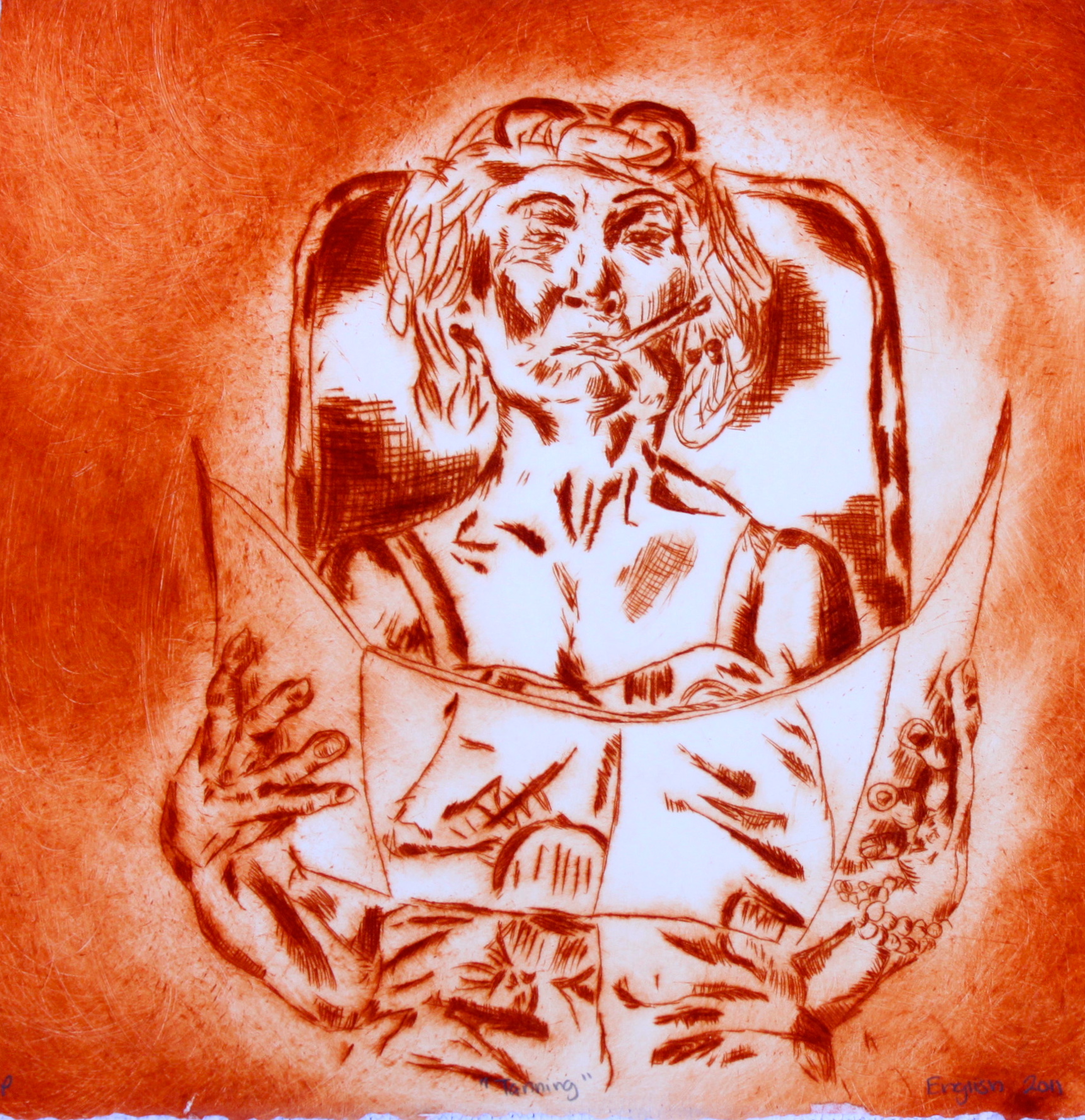 "Tanning." Drypoint on Lexan. 2011.