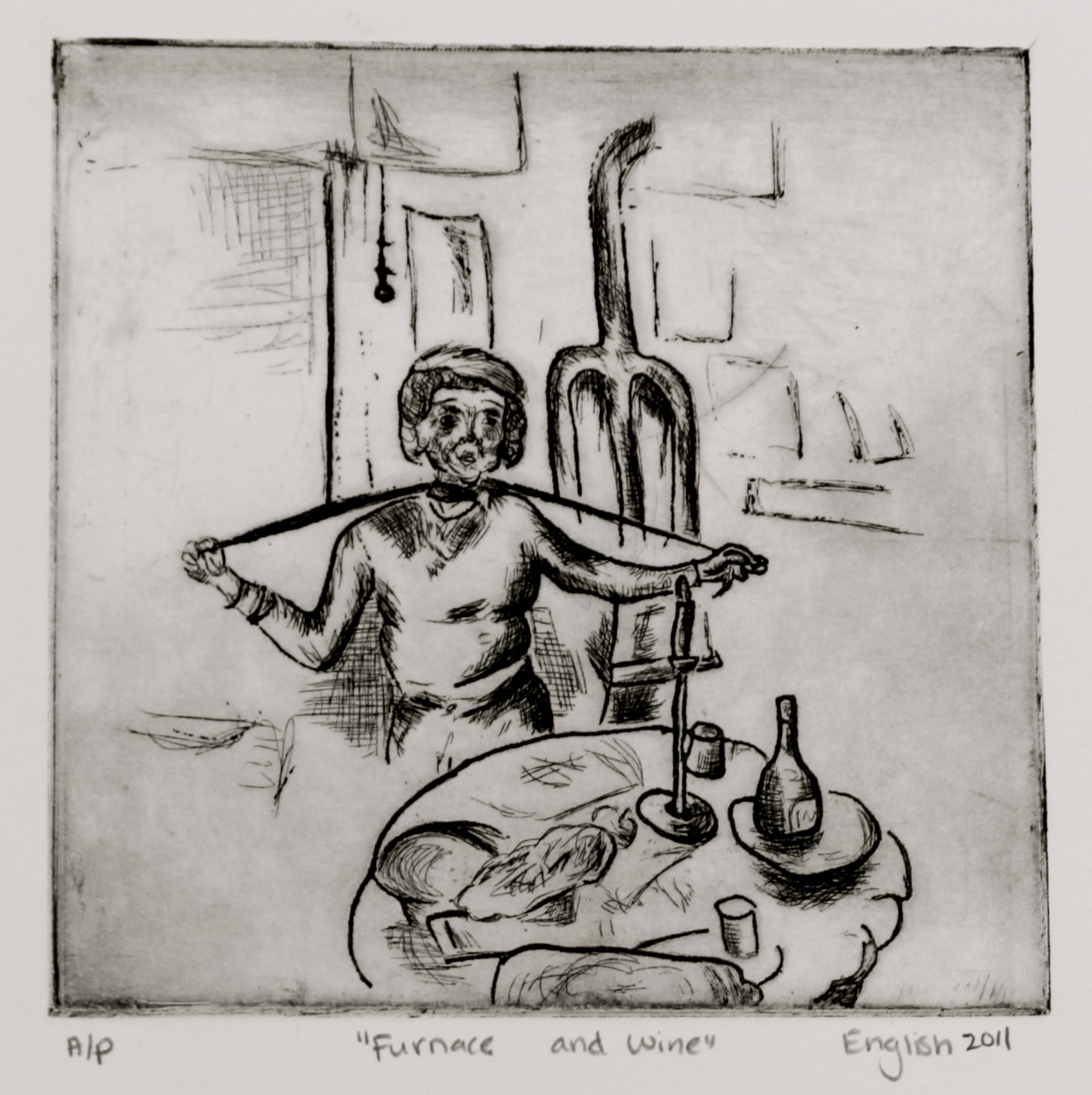 "Furnace and Wine." Etching. 2011.