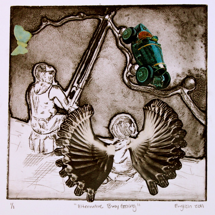 "Alternative Buoy Gazing." Etching and Chine Collé. 2011.