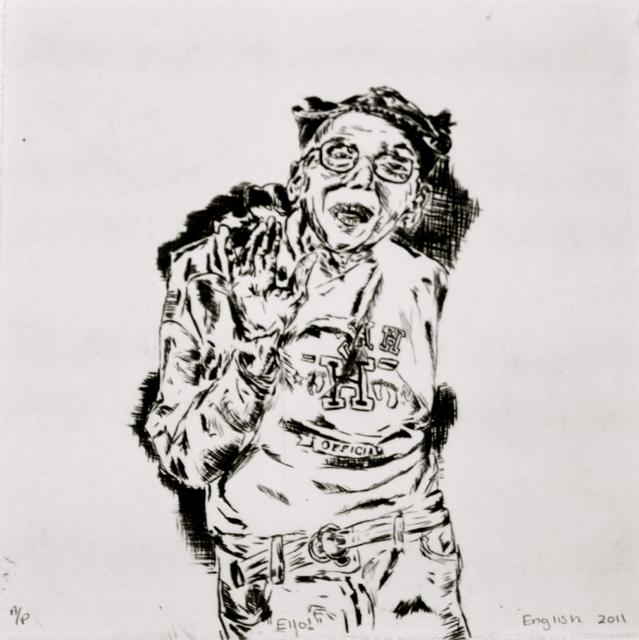 "Ello!" Drypoint on Lexan. 2011.