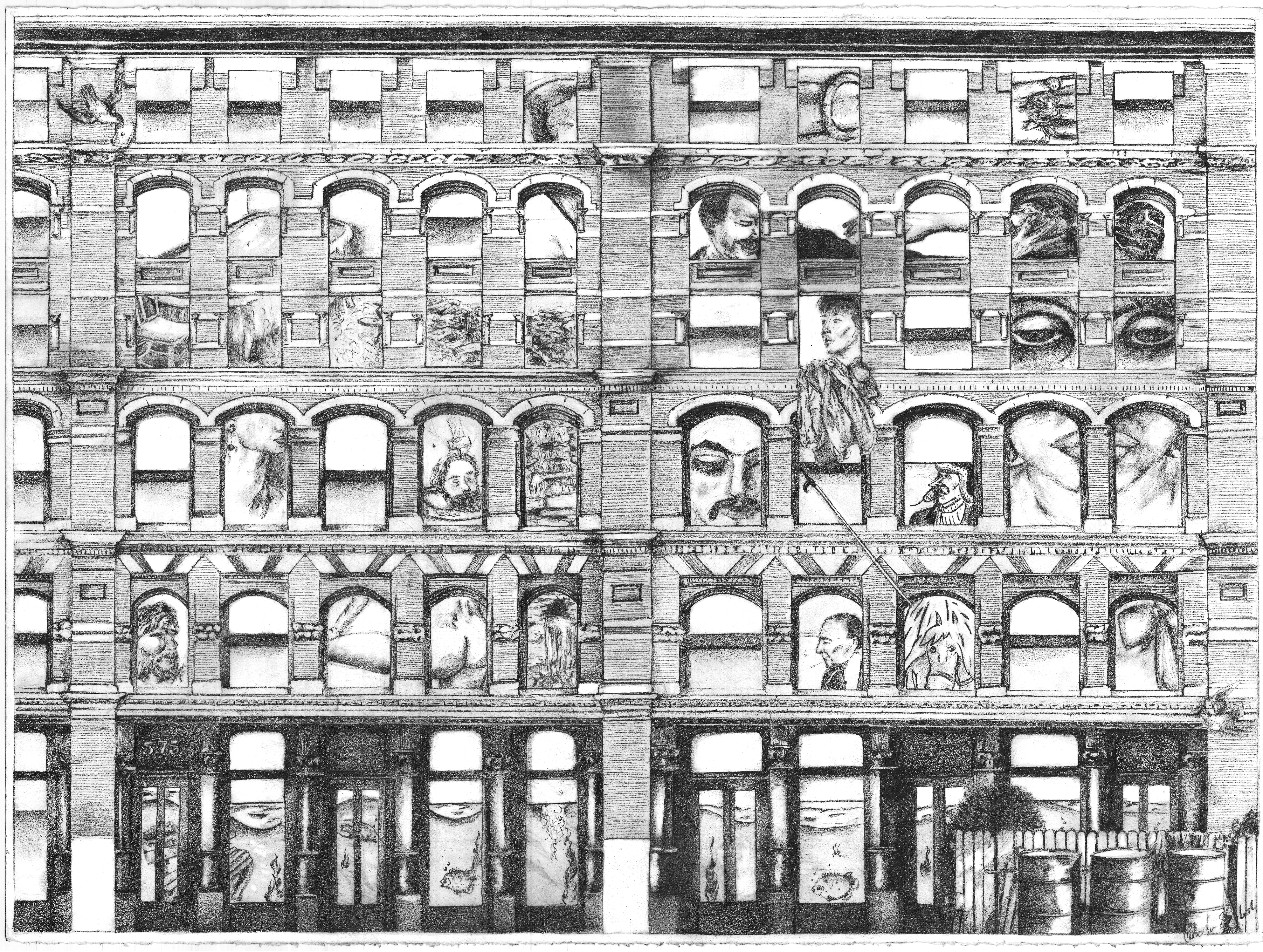"Afternoons in Apartment Building 575." Graphite. 2012.